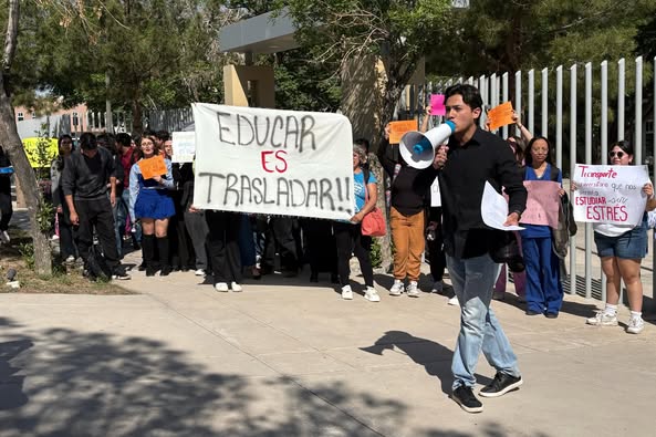 “La Oriente Poniente, debido a que muchos compañeros y compañeras nos comentan que hemos tenido muchos problemas porque no pasan en los horarios correspondientes o termina a las 7:00 de la tarde, hay tres horas en las que los estudiantes están desamparados para regresar a sus casas”, detalló Jair Morales, estudiante y secretario general de la agrupación “Unión UACJ” quienes promovieron la manifestación.