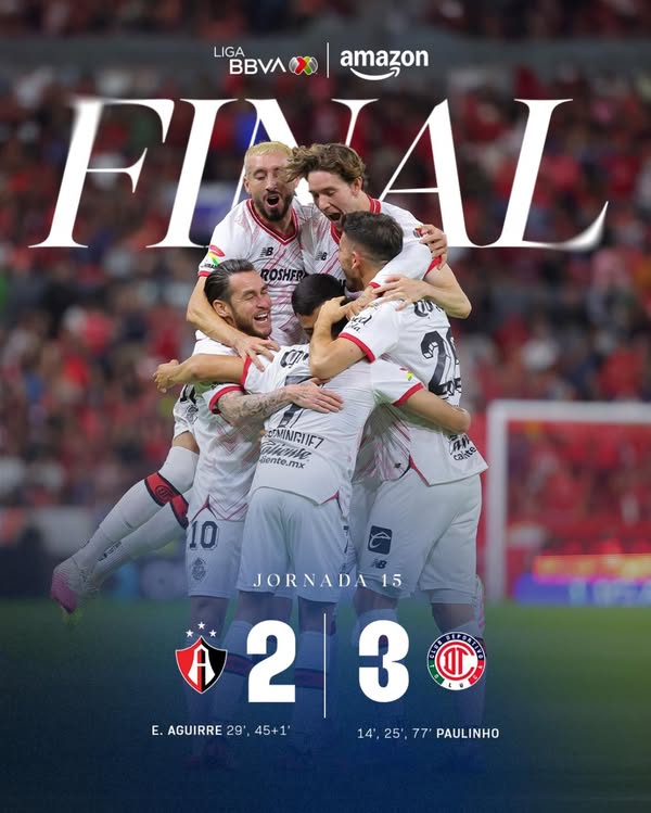 Toluca se convirtió en líder momentáneo del Clausura 2025 luego de vencer 2-3 al Atlas en el Estadio Jalisco con hat-trick incluido de Paulinho, quien ahora...