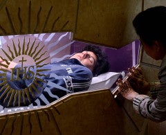 Allí fue enterrado con un molde de cera elaborado a su imagen, vestido con su chándal, vaqueros y zapatillas deportivas. Desde entonces, las multitudes se agolpan ante el ataúd, que cuenta con un cristal transparente.