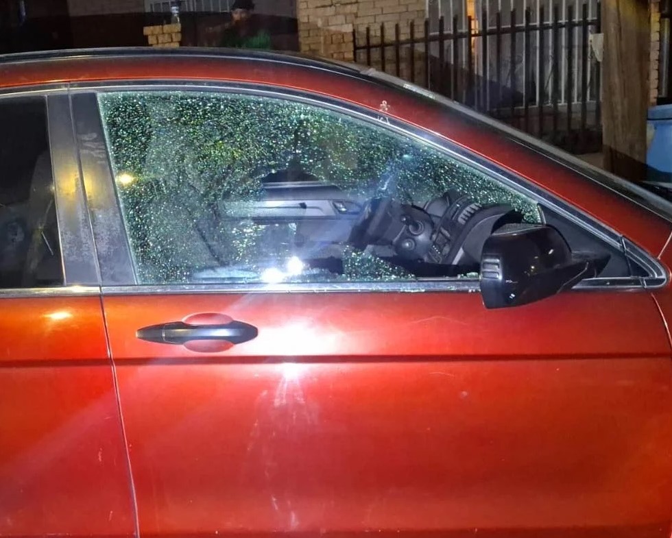 Dos balazos destrozaron el cristal de la puerta de un carro estacionado afuera de...