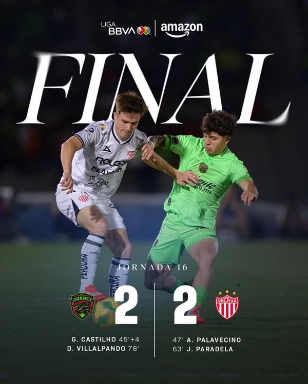 Juárez y Necaxa empataron en la frontera en un gran partido que terminó 2-2, prácticamente asegurando a...