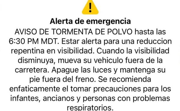 El Servicio Meteorológico Nacional activa aviso de tormenta de polvo hasta las 6:30 p.m....