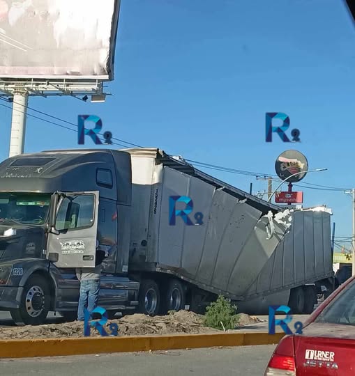 Un tráiler que circulaba por la avenida Gómez Morín sufrió un percance cuando el peso de la carga venció la estructura y la caja terminó partida a la mitad. La unidad quedó detenida en el carril extremo izquierdo en sentido de poniente a oriente.
