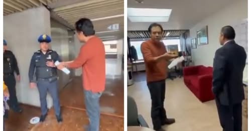 Un video muestra el momento en el que policías y un hombre de traje...