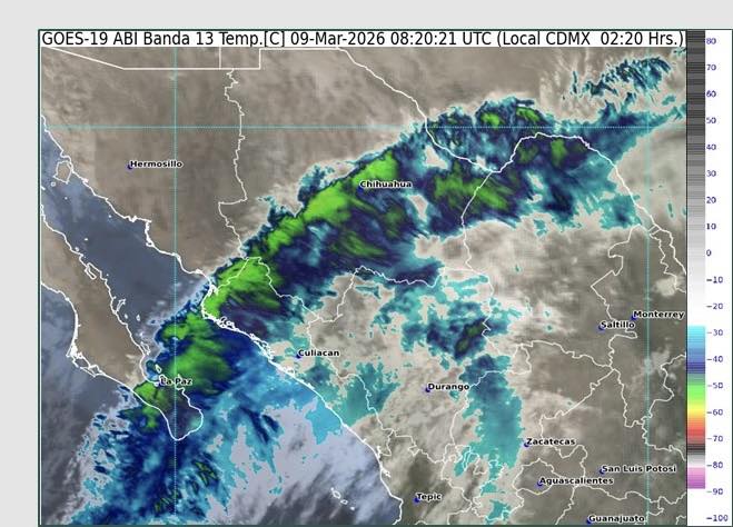Además, se esperan fuertes rachas de viento, ambiente frío a muy frío y posible caída de nieve o aguanieve en zonas serranas de Baja CaliforniaSonora y Chihuahua