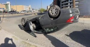 PIERDE CONTROL Y VUELCA EN LA PASEO VICTORIA FRENTE AL CONSULADO