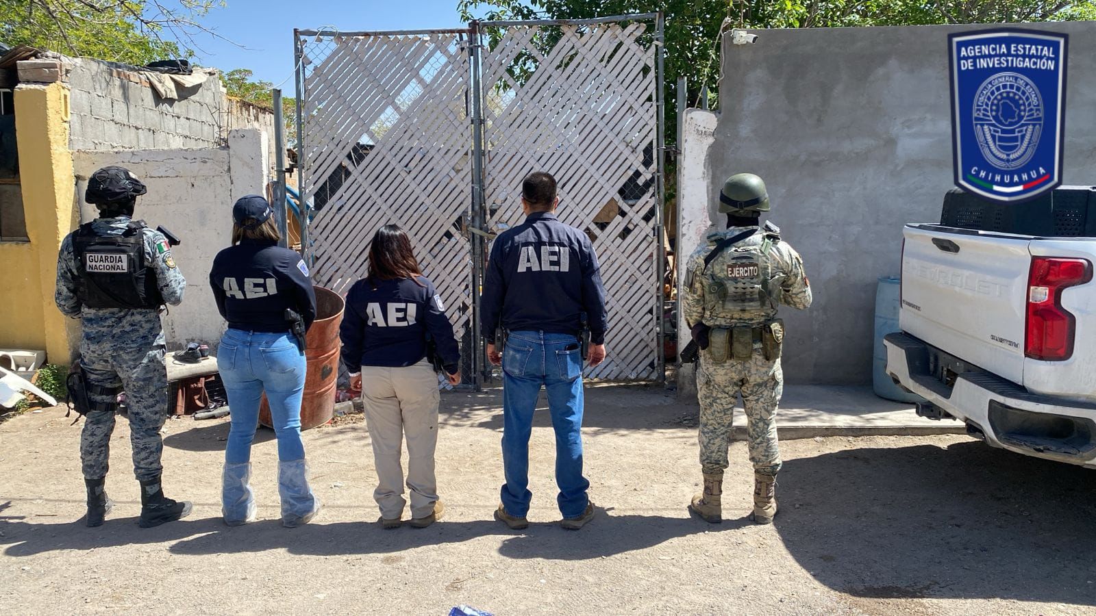 El cateo fue encabezado por agentes del Ministerio Público, elementos de la Agencia Estatal de Investigación (AEI), el binomio canino K-9, personal de la Dirección de Servicios Periciales y Ciencias Forenses, la Secretaría de Defensa Nacional (DEFENSA) y la Guardia Nacional.