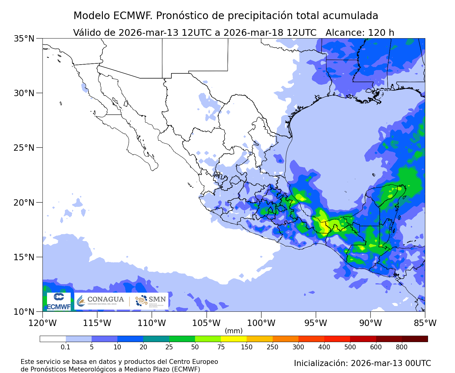• Intervalos de chubascos (5 a 25 mm): Guerrero, Estado de México, Tlaxcala, Puebla y Veracruz.
