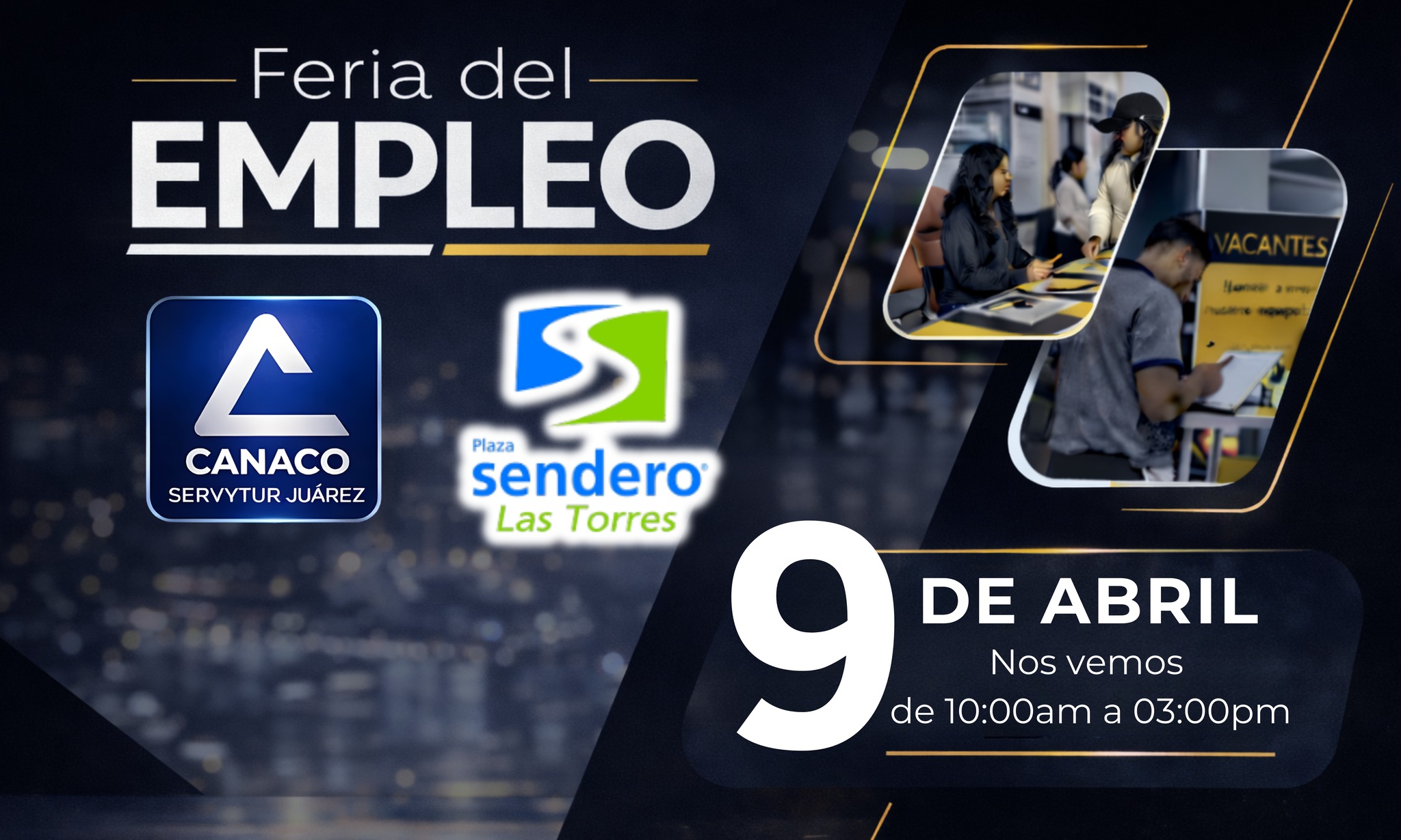 La cita es el próximo jueves 9 de abril en las instalaciones de Plaza Las Torres, donde diversas empresas locales y regionales se concentrarán para ofrecer oportunidades de contratación inmediata en un horario de 10:00 a.m. a 3:00 p.m.