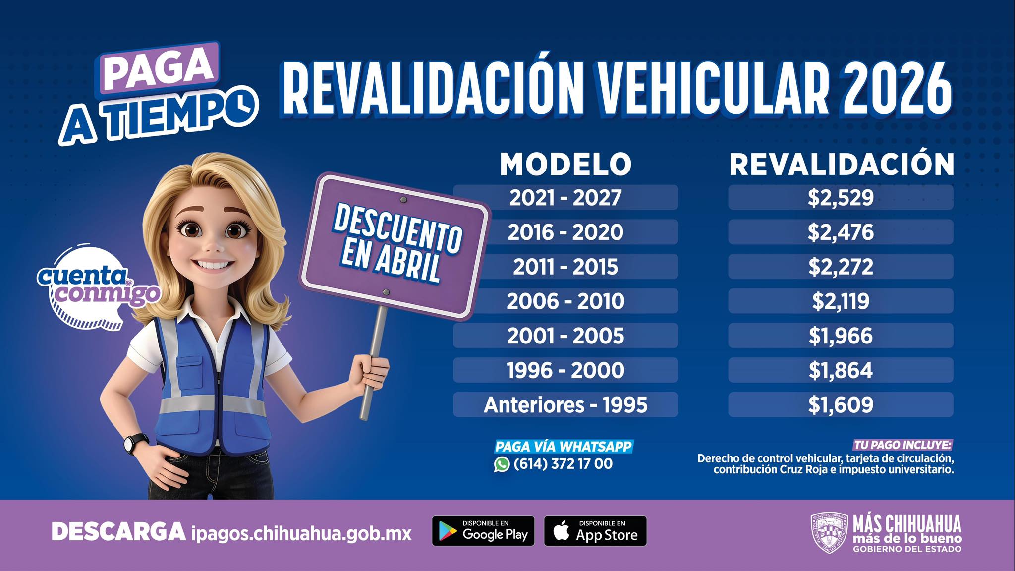 A partir de este mes de abril entraron en vigor los nuevos precios de la Revalidación Vehicular 2026 en el estado de Chihuahua.