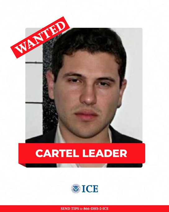 En redes sociales, el ICE difundió la imagen con el rostro del hijo mayor de “El Chapo” Guzmán, a quien señaló como líder del Cártel de Sinaloa y lo considerado como un ser “armado y altamente peligroso”.