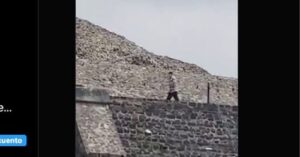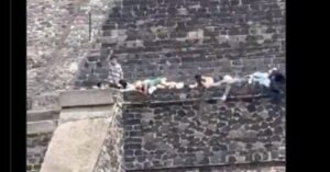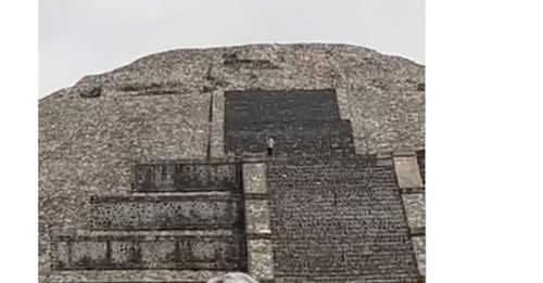 En un video que circula en redes, se observa a un hombre que disparó desde la parte alta de la Pirámide de la Luna; los turistas desconcertados pidieron auxilio a la Policía.