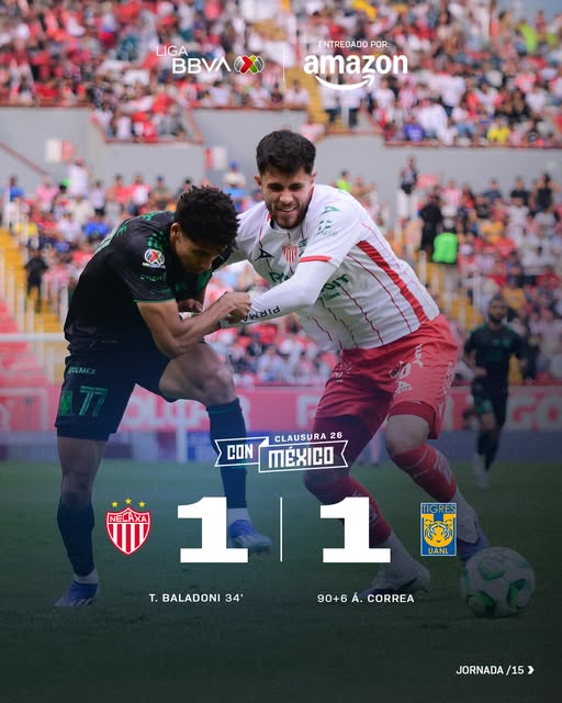 Sin embargo, al minuto 90+6, en la última jugada del partido, Rodrigo Aguirre filtró un balón dentro del área y Ángel Correa definió con precisión para el 1-1 definitivo. Un empate que sabe a alivio para Tigres y a golpe doloroso para Necaxa, que dejó escapar tres puntos vitales en casa.