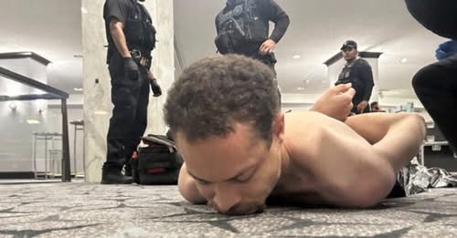 El mandatario compartió dos imágenes que muestran al sospechoso tendido en el suelo, boca abajo y sin ropa, mientras está custodiado por agentes de las fuerzas de seguridad tras ser reducido.