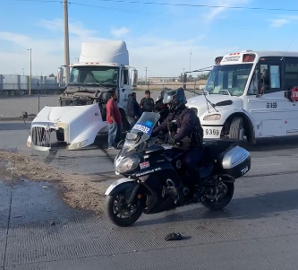 Esta mañana se registró una carambola entre una moto, un auto, un camión de personal y un tráiler en la Carretera a Casas Grandes.