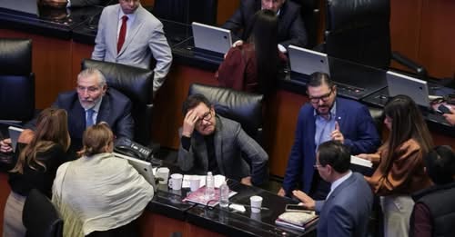 Durante la sesión en la Cámara Baja, legisladores de Movimiento Ciudadano llevaron un balde...